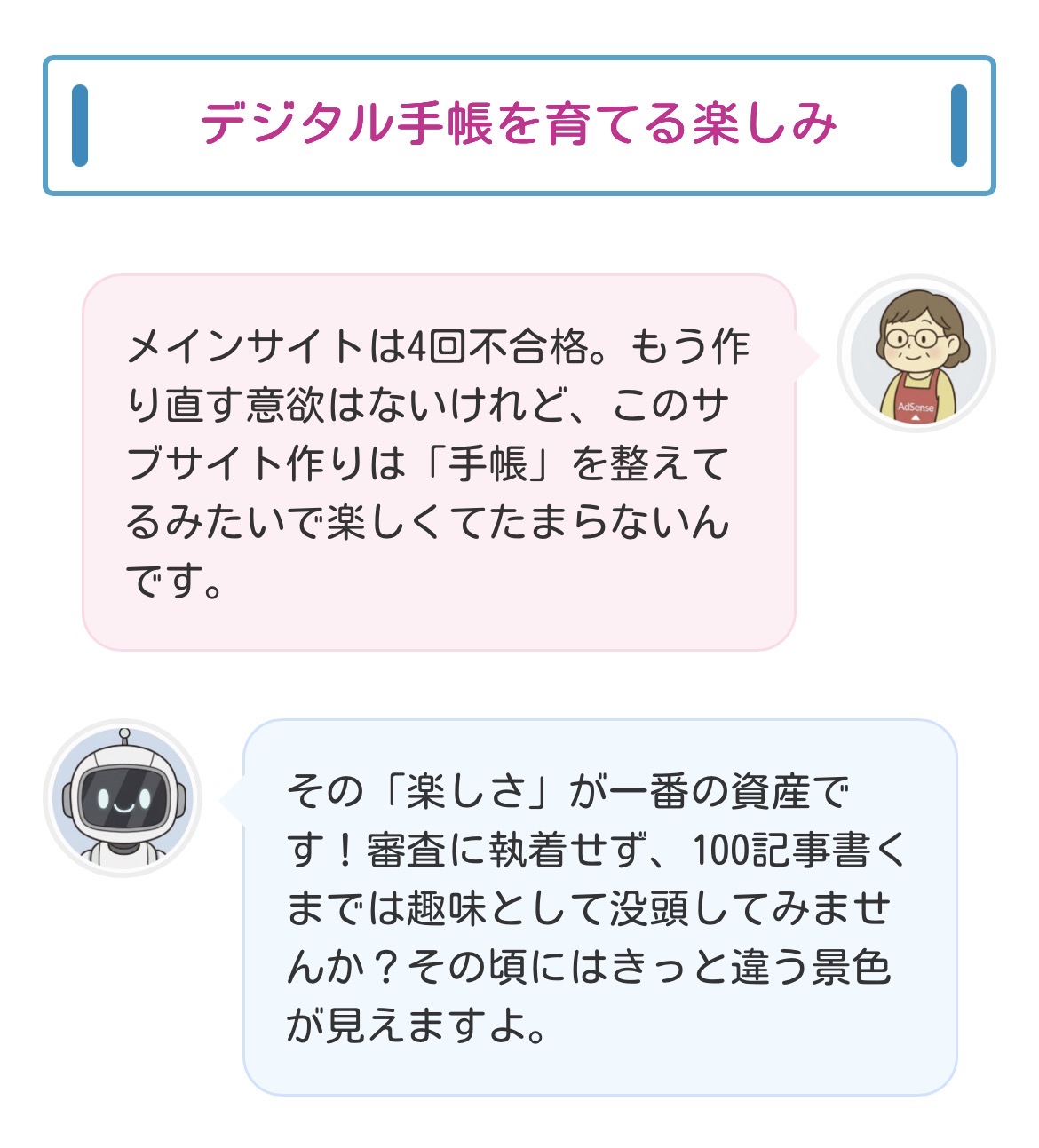 その「楽しさ」が一番の資産です!審査に執着せず、100記事書くまでは趣味として没頭してみませんか?その頃にはきっと違う景色が見えますよ。