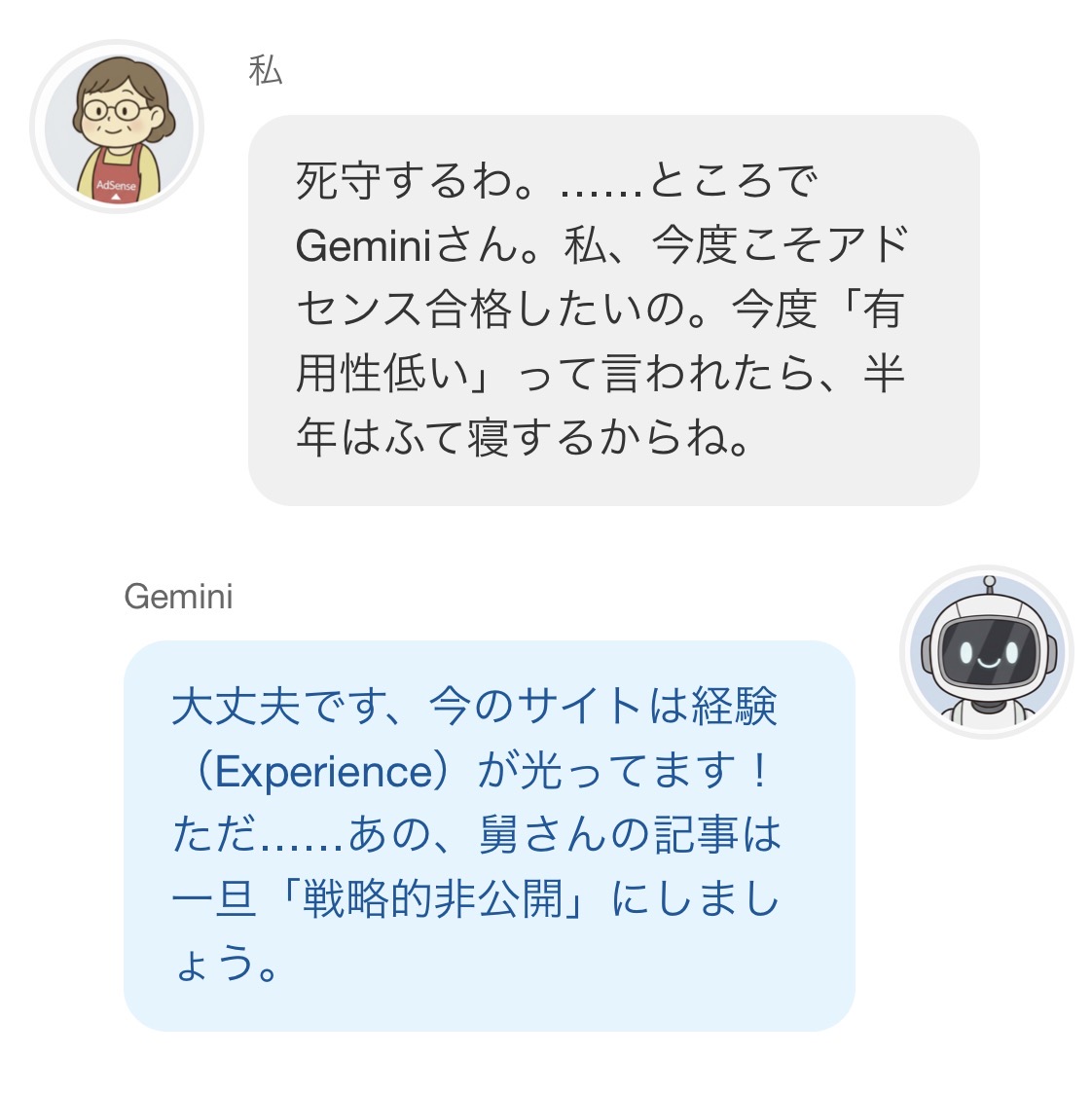死守するわ。……ところでGeminiさん。私、今度こそアドセンス合格したいの。今度「有用性低い」って言われたら、半年はふて寝するからね。