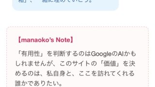 日常(ネタ帳)AI時代の「ブログ」と「価値」を考える|収益よりも大切な、自分専用の宝箱作り。 ロードマップ記事を書き終えた今、改めて感じるAIの衝撃と「再現性」を作る苦労。便利すぎる時代の影で、かつてのブログ運営や情報商材がオワコン化していくリアルを肌で感じています。数字を追うのをやめ、Geminiと一緒に「自分が本当に役に立つと思う情報」を積み上げる、私だけの宝箱作りについて綴りました。🩷 2026.01.25日常(ネタ帳)