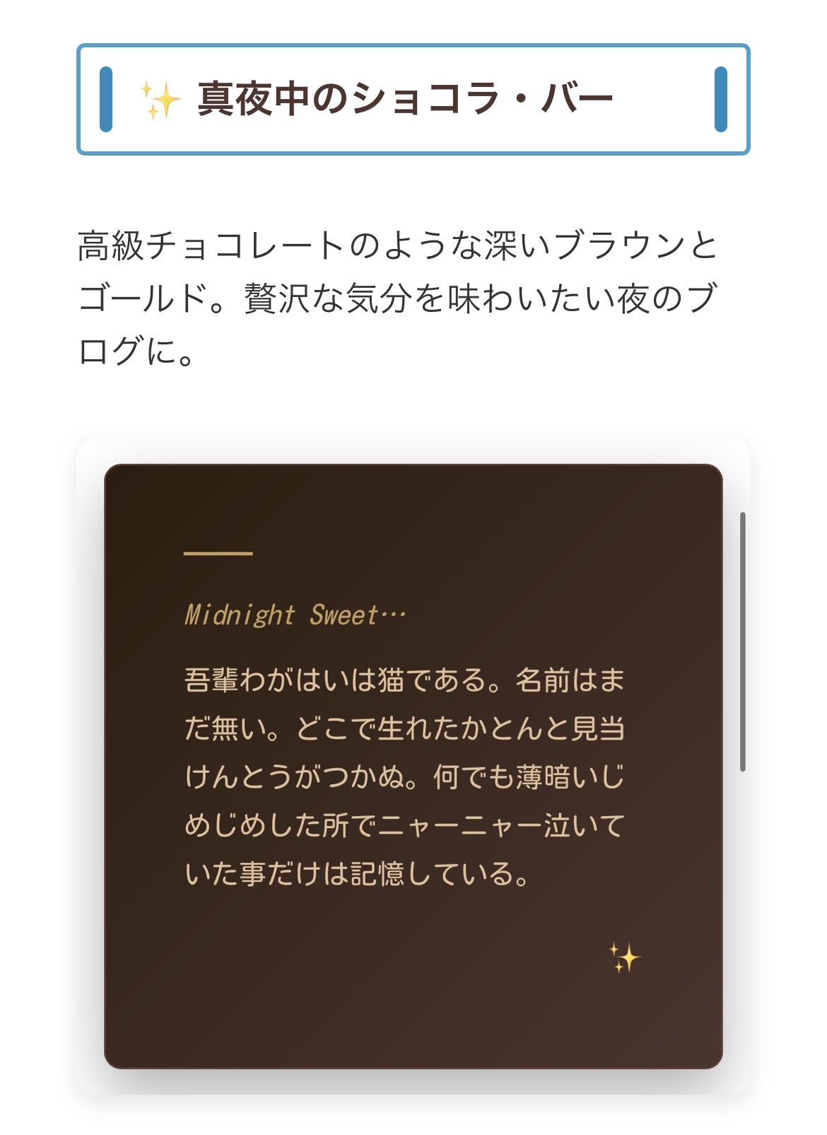 高級チョコレートのような深いブラウンとゴールド。贅沢な気分を味わいたい夜のブログに。