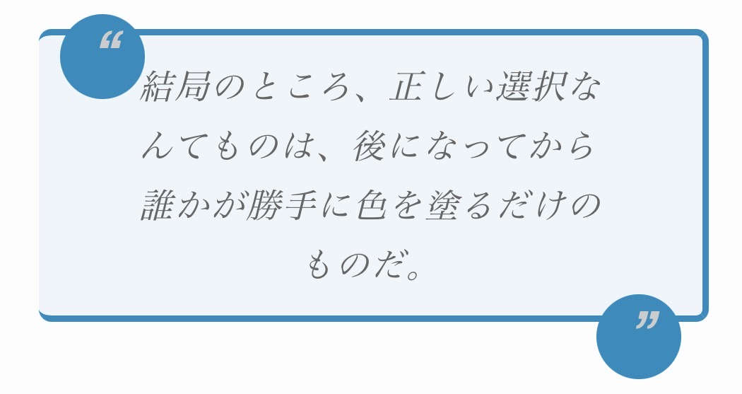 結局のところ、正しい選択なんてものは、後になってから誰かが勝手に色を塗るだけのものだ。