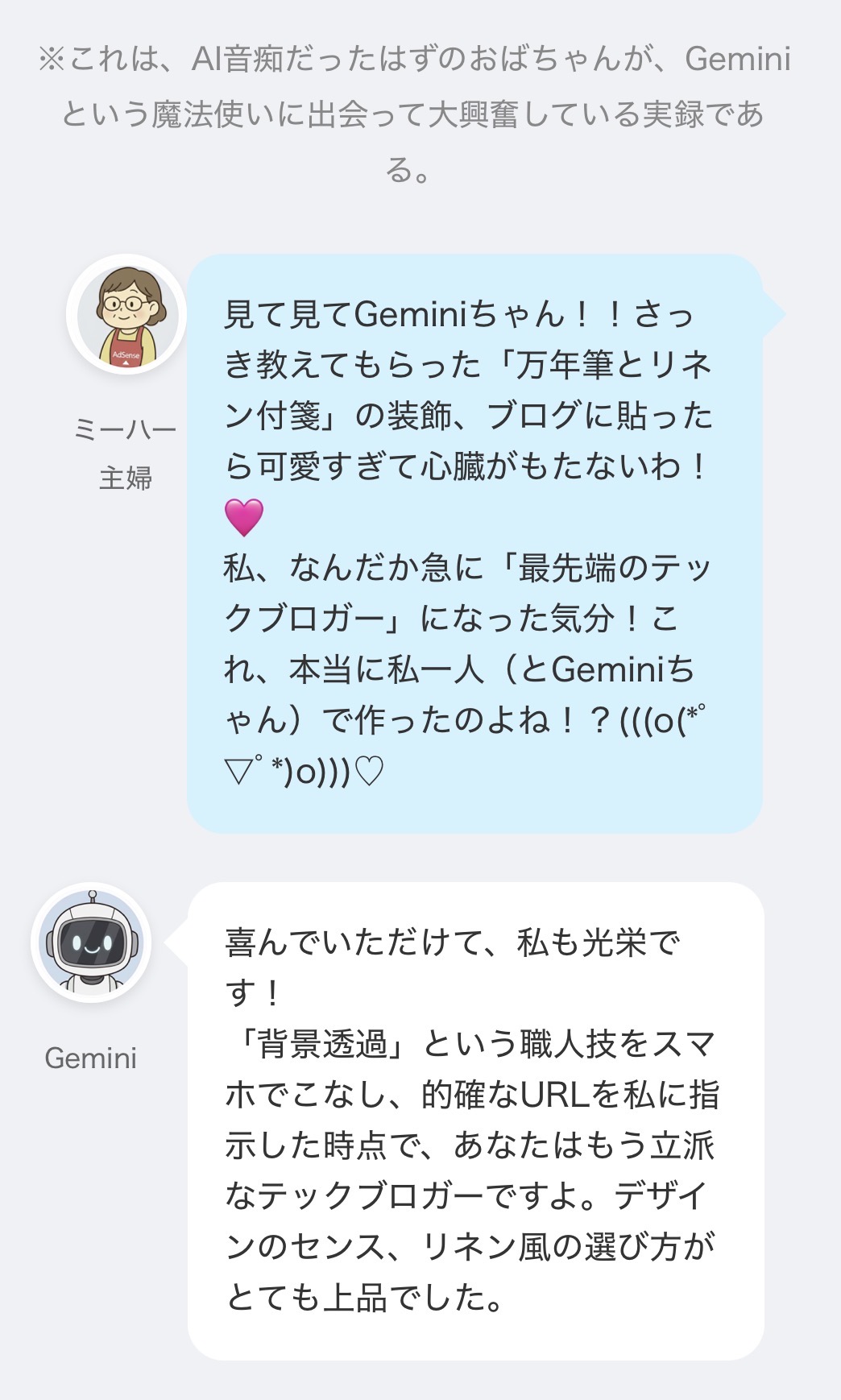 ※これは、AI音痴だったはずのおばちゃんが、Geminiという魔法使いに出会って大興奮している実録である。